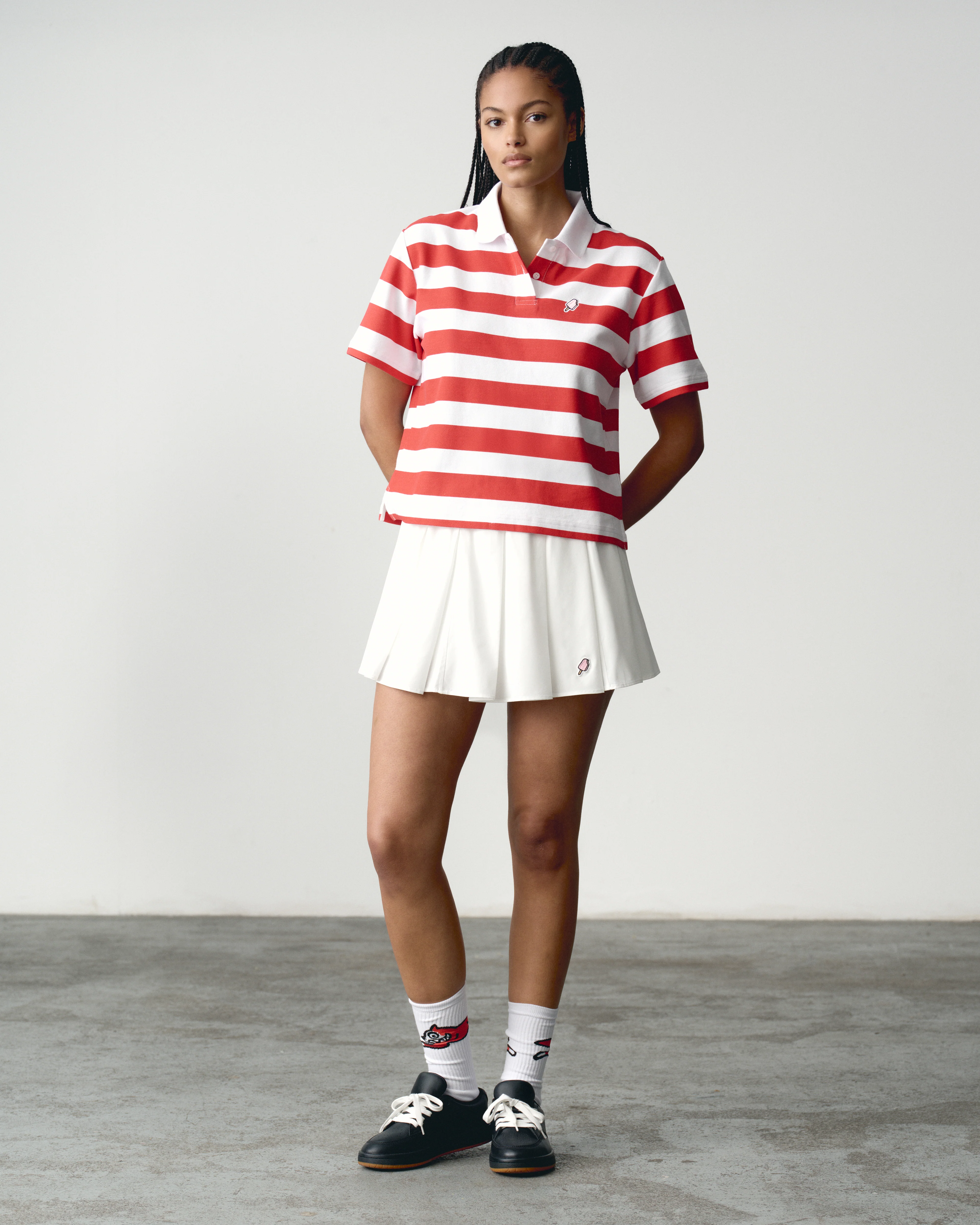 ICECREAM Women's Season 2 – The Popsicle Striped Polo Shirt features the embroidered popsicle at chest with contrasting stripes and branded buttons. Boxy fit.